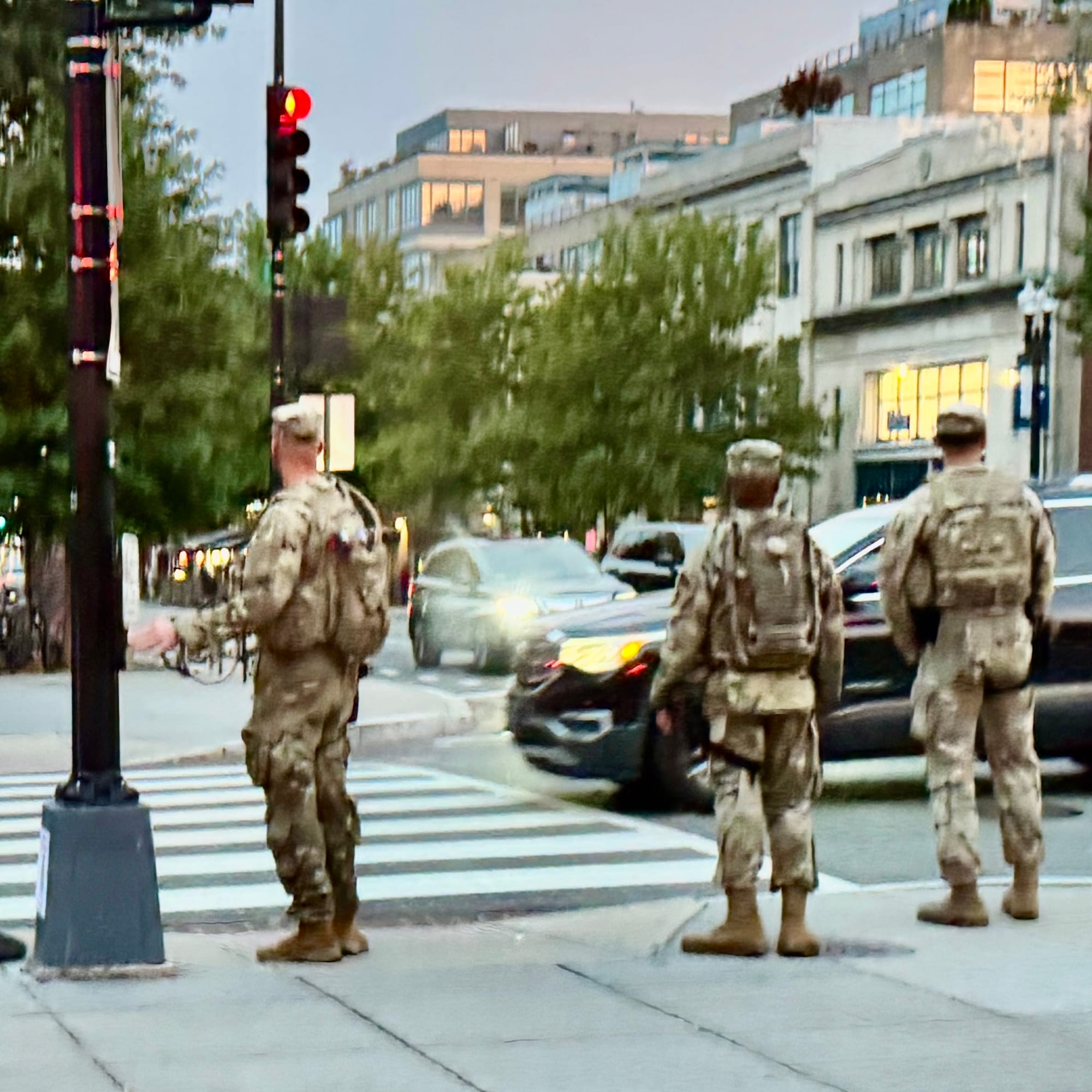 I’ve spent a good amount of this break at home, in a city under occupation. As noted below, I’ve been seeing lots of soldiers: National Guard people with day jobs and families elsewhere, who did not sign up for this mission. The presence of ICE and CBP—who absolutely did sign up for this mission, and who are scarier and more politicized than the soldiers—is more episodic, and I have not seen them yet, even though I’ve been walking and riding around the city quite a bit.